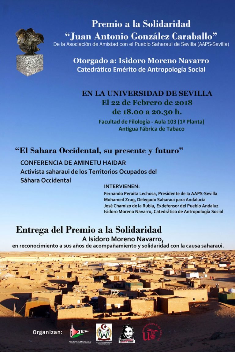 Desde la Asociación de Amistad con el Pueblo Saharaui de Sevilla realizan la Entrega del Premio a la Solidaridad «Juan Antonio Gonzalez Caraballo«, que este año otorga … Leer más